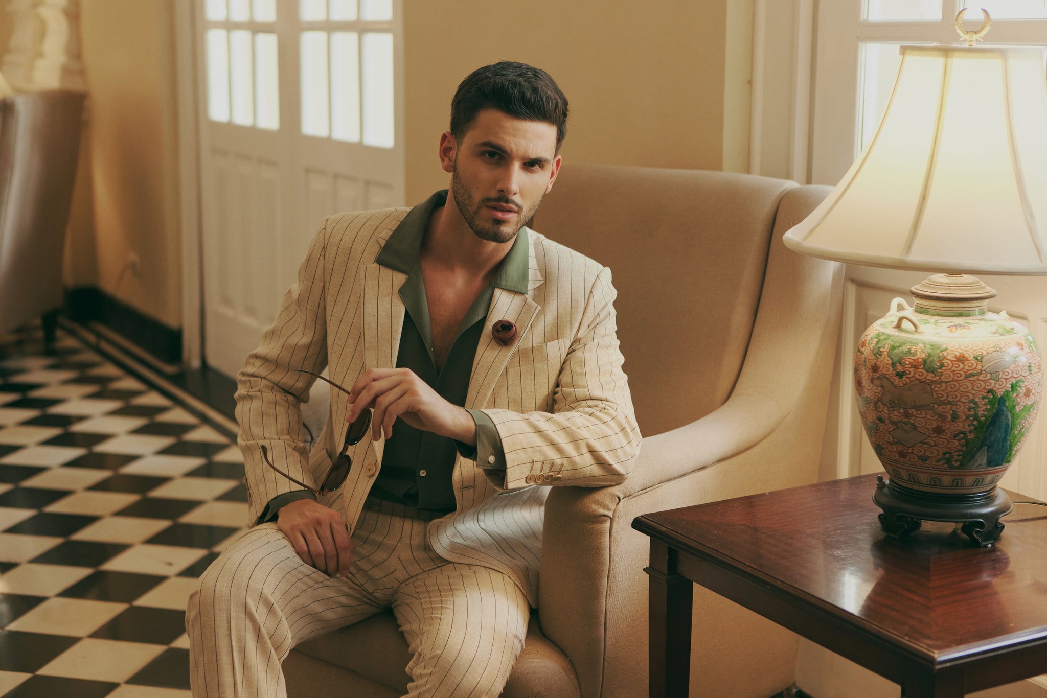 SUIT EN LINO VERDE OLIVO
